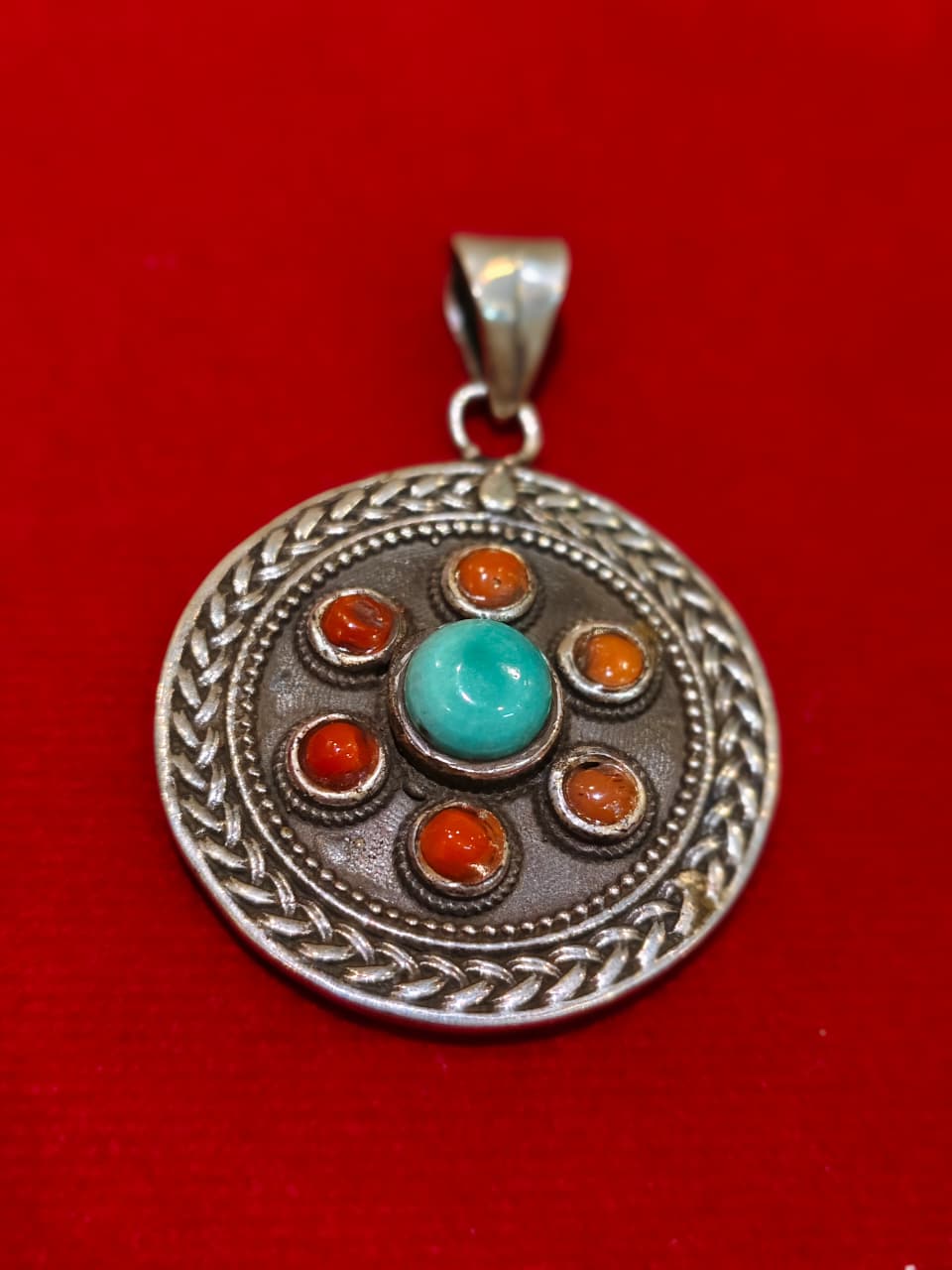 CORAL TURQUOISE SILVER PENDANT