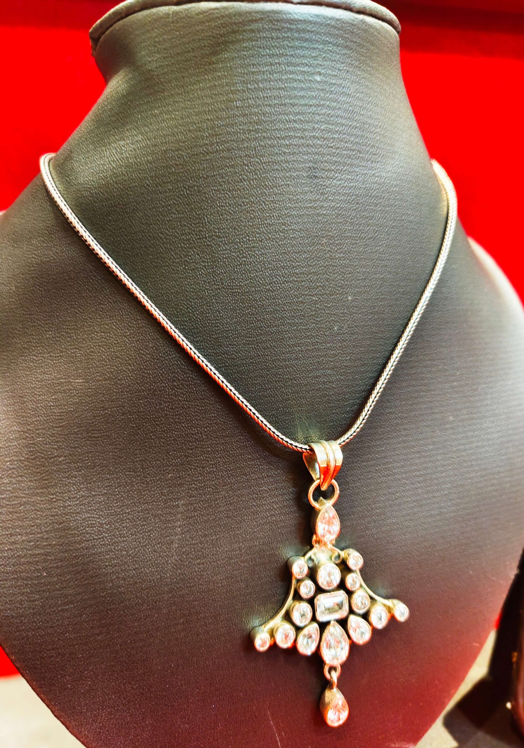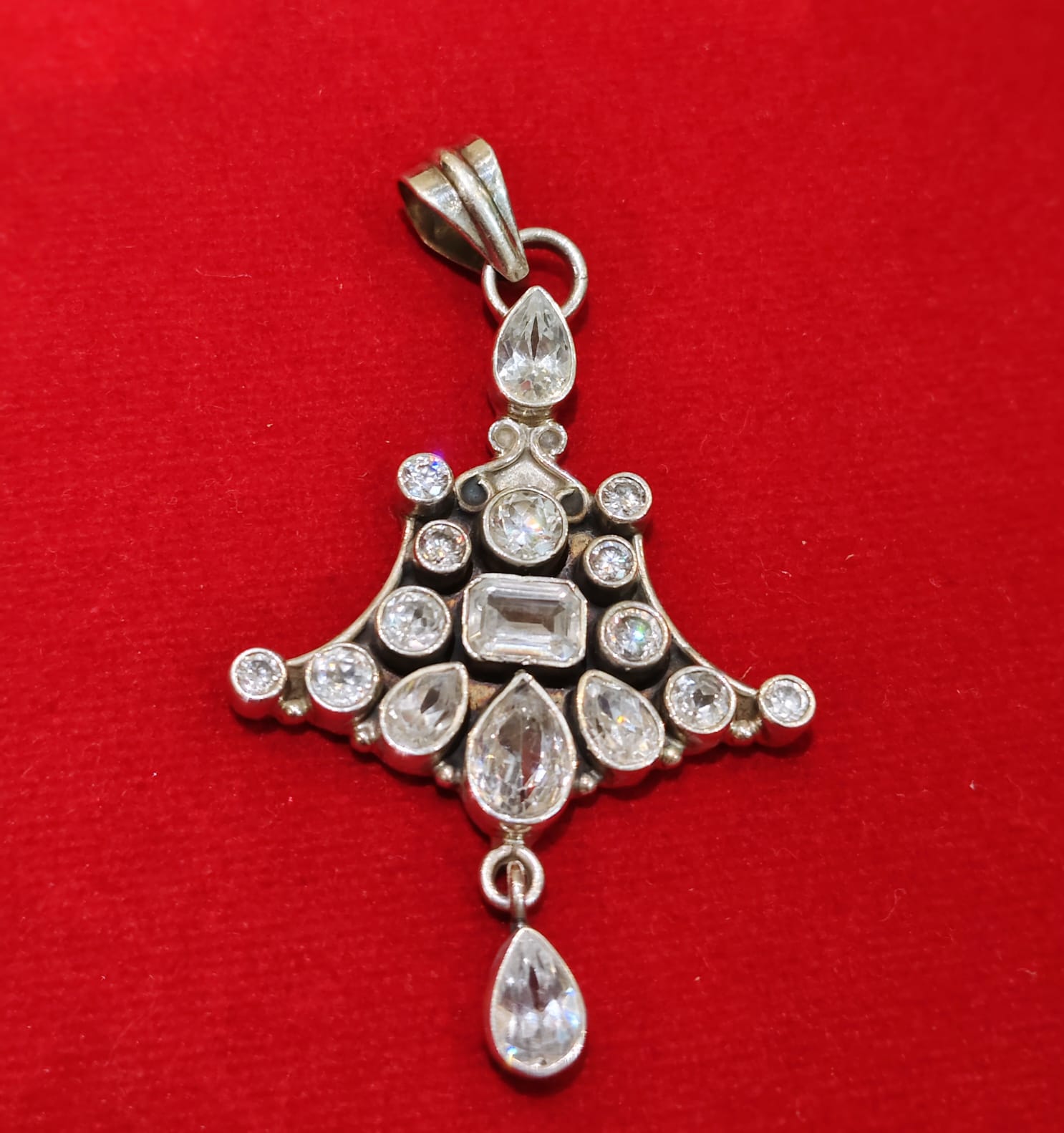 Refined and radiant, the Crystal White Silver Pendant shines with quiet brilliance. Featuring a sparkling white crystal set in polished silver, this pendant complements both traditional and modern ensembles. It’s ideal for formal events, evening dinners, or adding elegance to everyday attire. With its clean lines and clear energy, this piece symbolizes clarity and grace—perfect for women who appreciate subtle beauty and the power of simplicity in their jewelry.