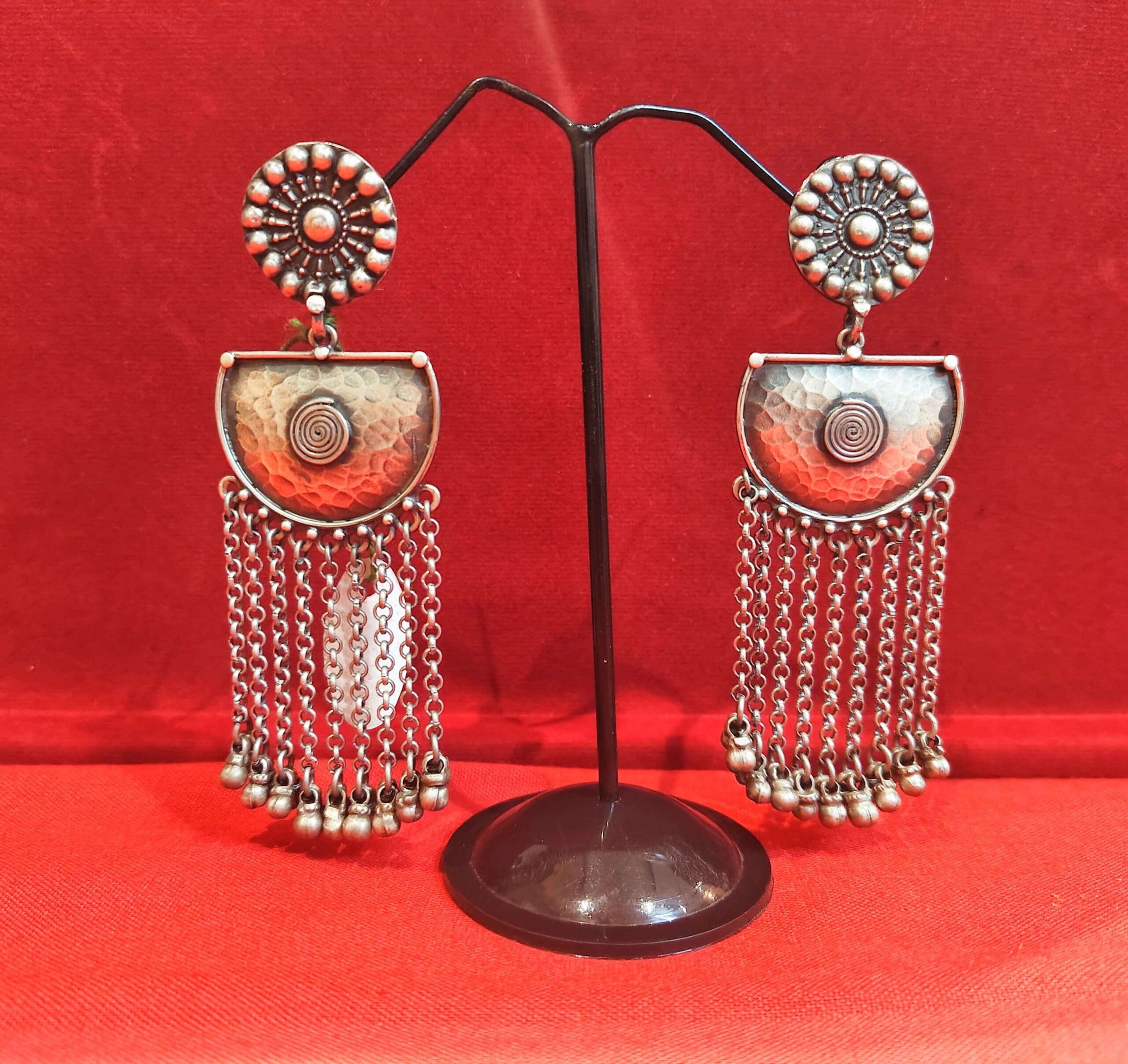 The Half Moon Chain Danglers blend contemporary design with ethnic influence. The half-moon structure creates a bold silhouette, while delicate chains add movement and sophistication. These earrings are versatile enough to pair with both Indian and fusion outfits. Whether worn with a festive kurta or a cocktail saree, they radiate elegance and modern flair. A unique choice for women who appreciate minimalist design with a hint of drama.